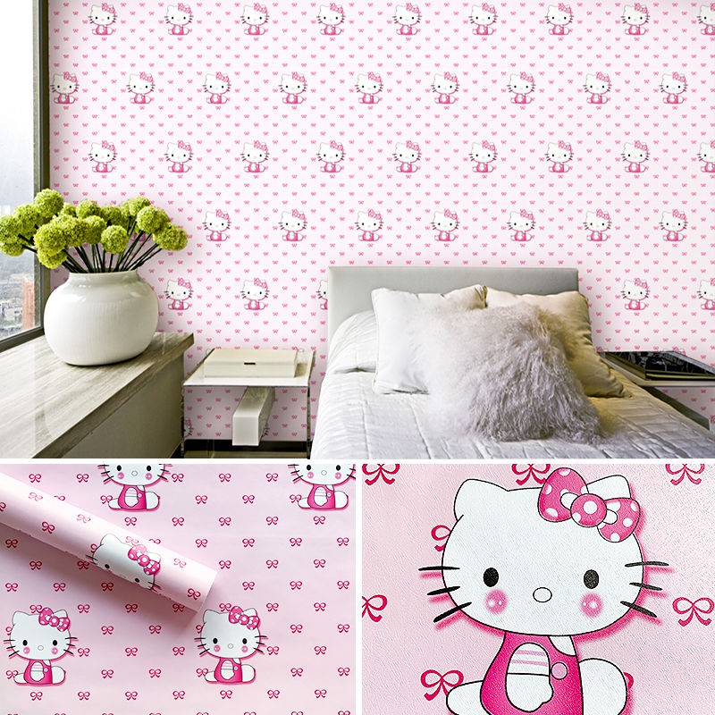 Wallpaper 3d 10m Bow Simpul Hello Kitty Untuk Rumah Bilik Tidur Wall Covering Decor Minimalist Wallpaper Mewah Pink Shopee Malaysia